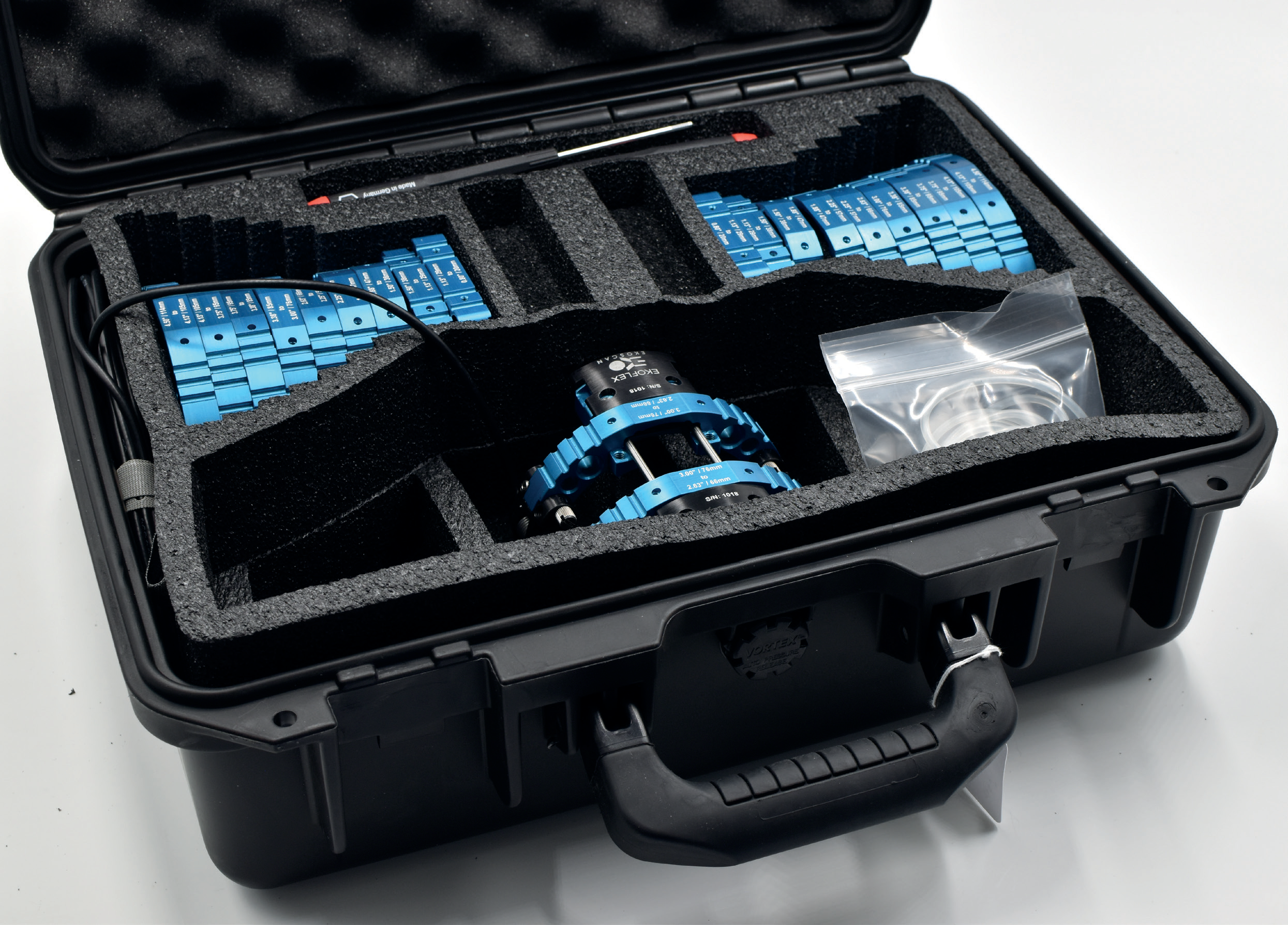 - 10 звеньев (бандажей), охватывающих диапазон труб от 0,8 дюйма (20,3 мм) до 4,5 дюйма (114,3 мм)